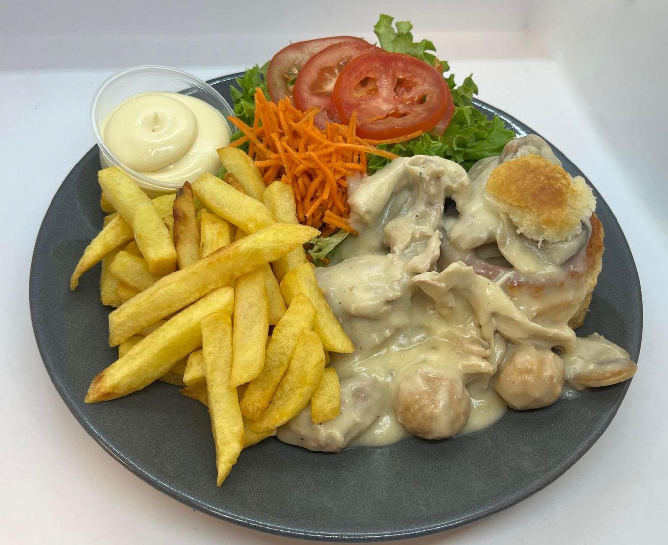 - vol au vent met koekje, sla en saus